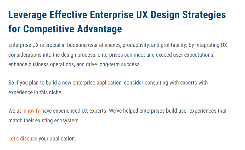 Our team wrote a blog discussing effective enterprise UX design strategies for the UK-based IT services company Innovify, and here’s how we ended it!