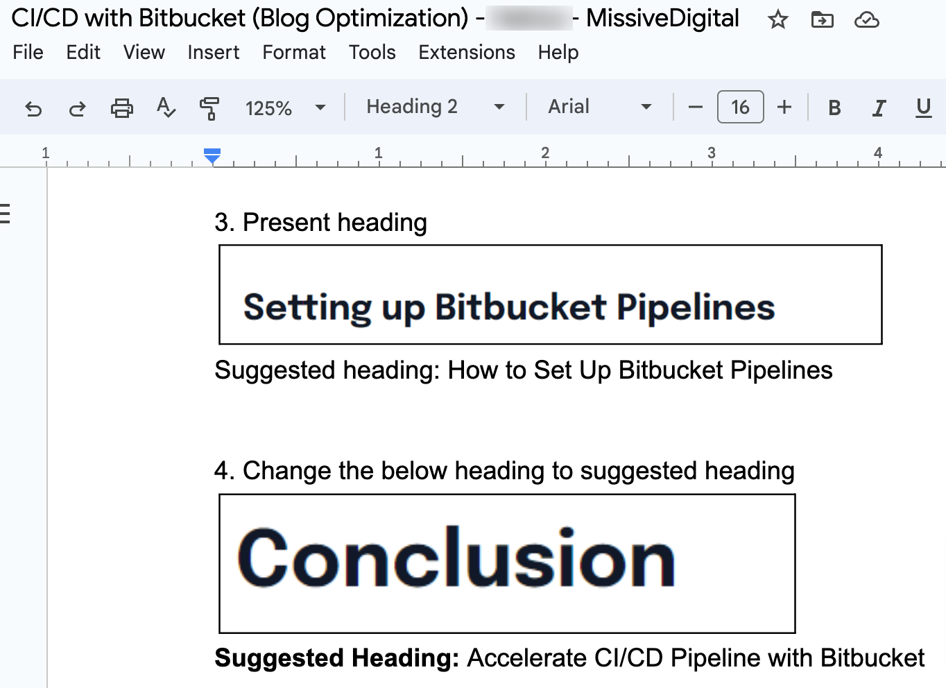 • Ensure your last heading has H2 assigned.