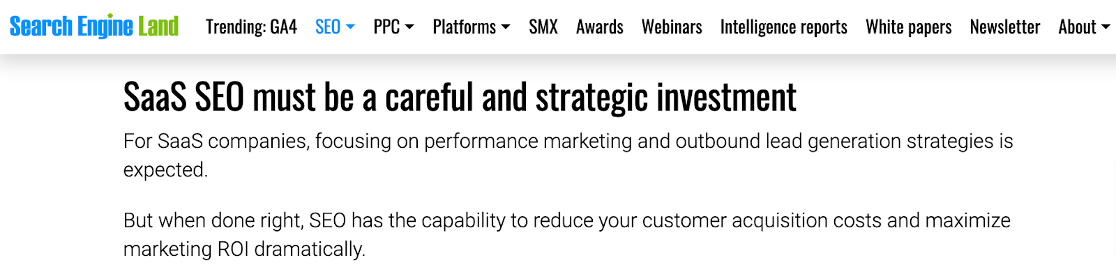 In my blog on Search Engine Land’s SaaS SEO challenges, I tried to invoke a thought-process for SEOs working in the SaaS industry that SEO for SaaS has to be careful and strategic investment as for them, speedy growth in sales and revenue matters the most first and then everything else and SEO is a slow game but still it has the power to reduce the customer acquisition costs drastically.