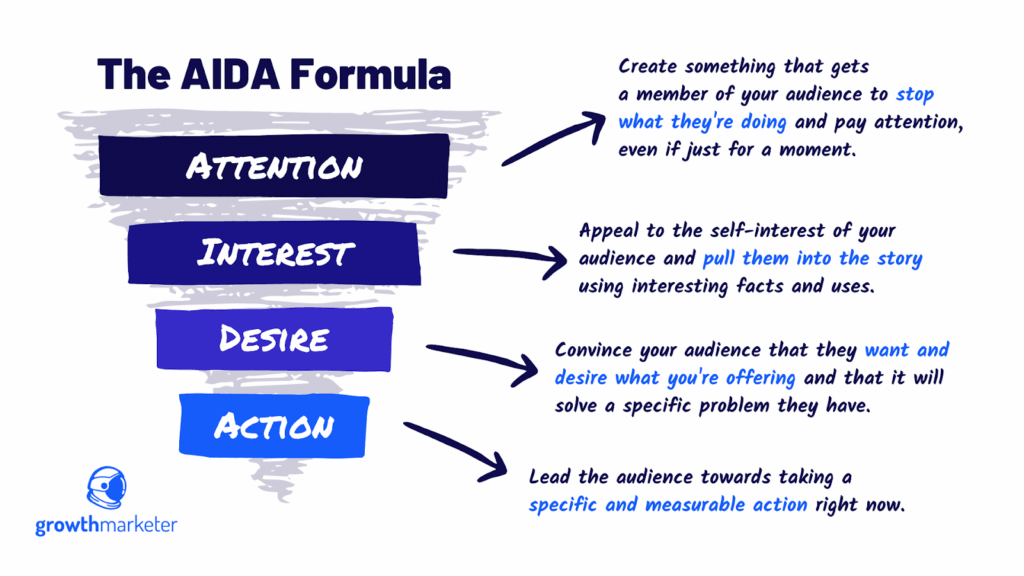 The AIDA model is commonly used to drive conversions and guide readers through the sales funnel.