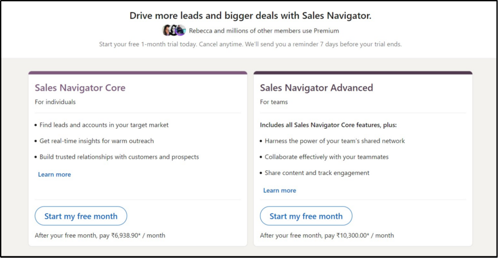 It is the best LinkedIn package for sales professionals. Sales teams can connect with contacts and accounts within the LinkedIn ecosystem to generate leads.