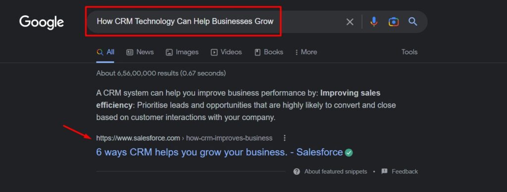 This means that people using or looking forward to using a CRM will find this helpful article at the top of search engine results, allowing potential customers to quickly learn more about how the HubSpot CRM could help their business.